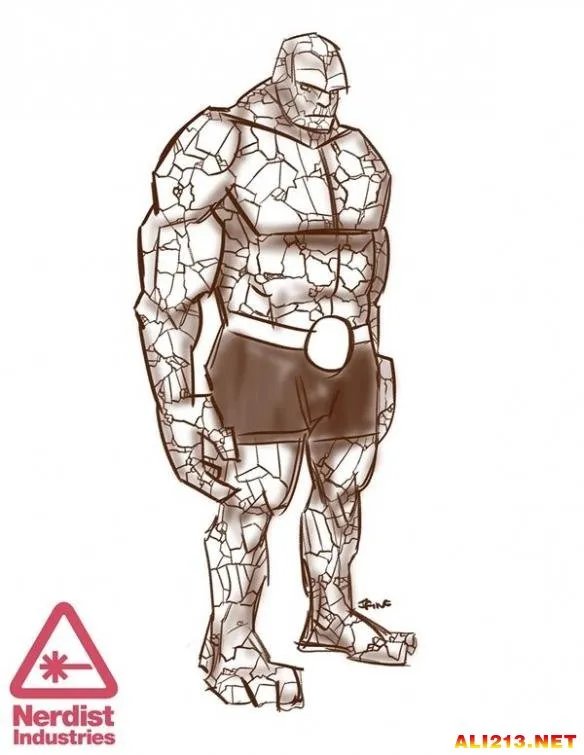 杰米•贝尔饰演石头人,老版中的紧身长裤改良成平角内裤的式样,更贴近漫画原著中的造型